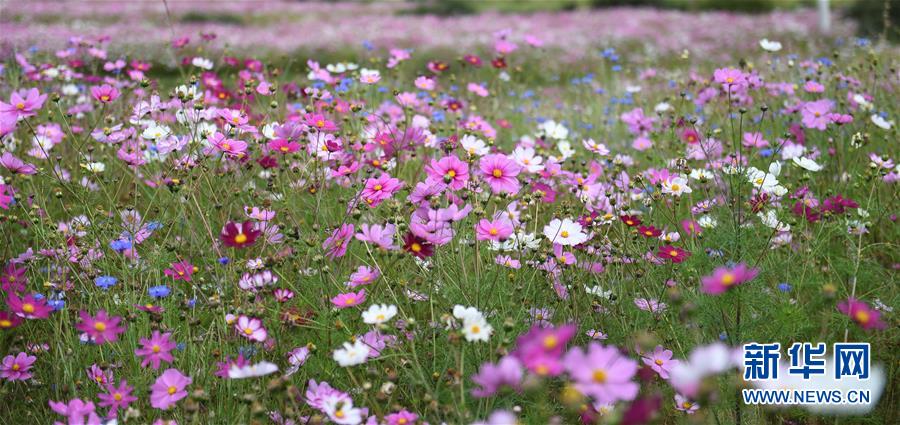 9月13日拍攝的尼木縣山谷間盛開的波斯菊。 新華社記者 晉美多吉 攝