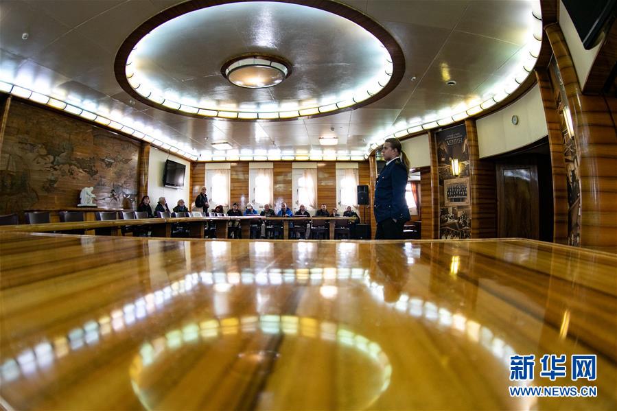 9月14日,在俄羅斯摩爾曼斯克,游客在核動力破冰船“列寧”號內(nèi)部聆聽工作人員講解。  新華社記者 白雪騏 攝