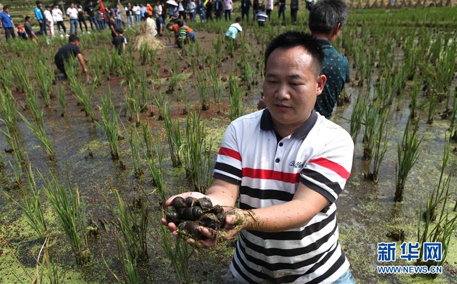 10月28日,在廣西融水苗族自治縣拱洞鄉(xiāng)龍令村,村民參加抓魚(yú)比賽。當(dāng)日,廣西融水苗族自治縣拱洞鄉(xiāng)舉辦香糯泉水螺美食文化節(jié),苗族、侗族、瑤族、壯族等各民族同胞歡聚一堂,通過(guò)摸螺抓魚(yú)比賽、田螺姑娘評(píng)選、跳蘆笙踩堂舞、品香螺百家宴等豐富多彩的活動(dòng),慶祝金秋豐收。近年來(lái),拱洞鄉(xiāng)依托生態(tài)資源優(yōu)勢(shì),大力發(fā)展香糯種植、田螺養(yǎng)殖等特色產(chǎn)業(yè)。全鄉(xiāng)的田螺養(yǎng)殖面積4000多畝,成立4家田螺產(chǎn)業(yè)專業(yè)合作社,帶動(dòng)2000多農(nóng)戶參與到田螺養(yǎng)殖。目前,田螺養(yǎng)殖已成為當(dāng)?shù)刎毨裘撠氈赂坏闹匾a(chǎn)業(yè)。新華社記者 黃孝邦 攝