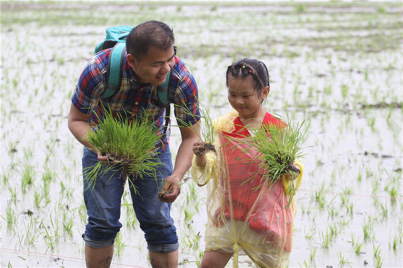 2019年5月26日,江蘇淮安市洪澤區(qū)岔河鎮(zhèn)舉辦“插秧節(jié)”活動(dòng),游客通過(guò)手工插秧比賽、親子插秧體驗(yàn)、稻田抓魚(yú)、稻田拔河等趣味游戲體驗(yàn)農(nóng)耕樂(lè)趣,感受田園生活。陳凱/視覺(jué)中國(guó) 編輯/陳進(jìn)