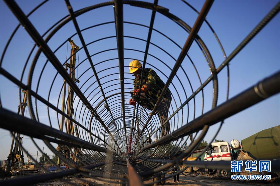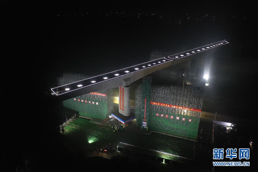 8月27日凌晨,施工人員在進(jìn)行橋梁轉(zhuǎn)體施工。新華社記者楊世堯攝