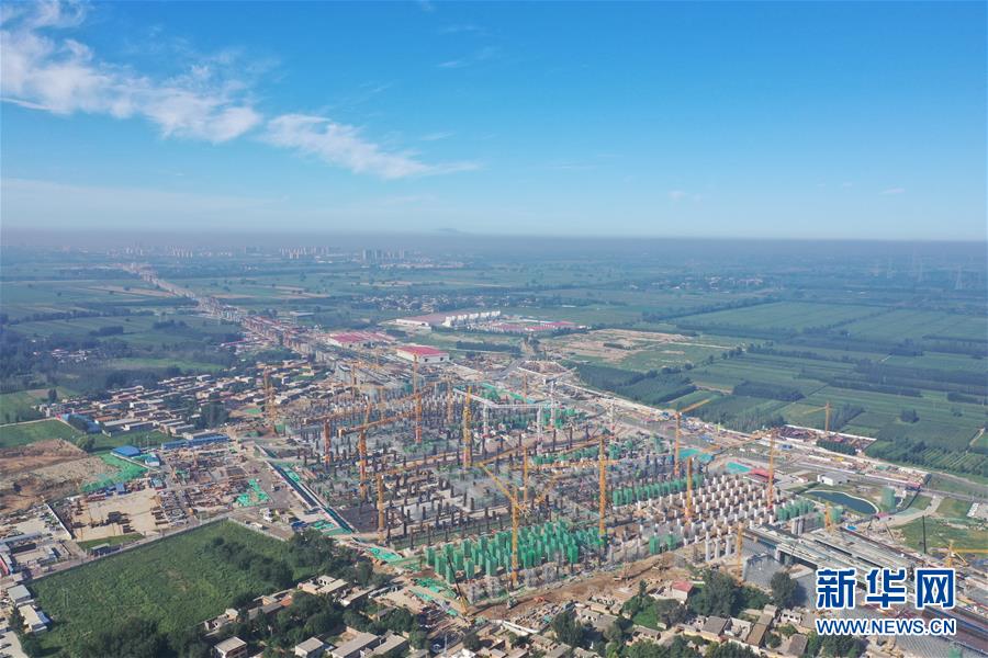 8月27日無(wú)人機(jī)拍攝的建設(shè)中的雄安站。