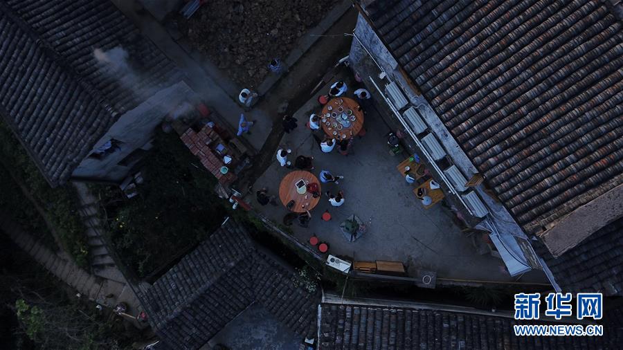 游客在木梨硔村吃早點(diǎn)(9月18日無人機(jī)拍攝)。新華社記者張端攝