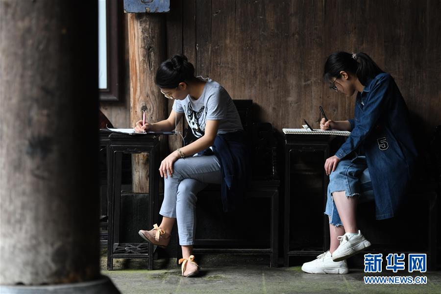 4月24日,繪畫愛好者在西遞風景區(qū)寫生。新華社記者張端攝