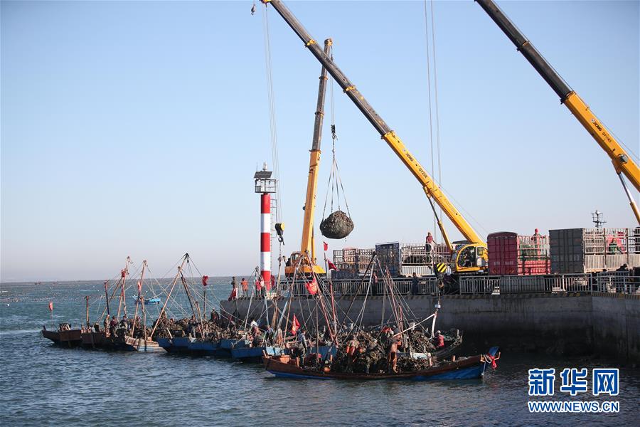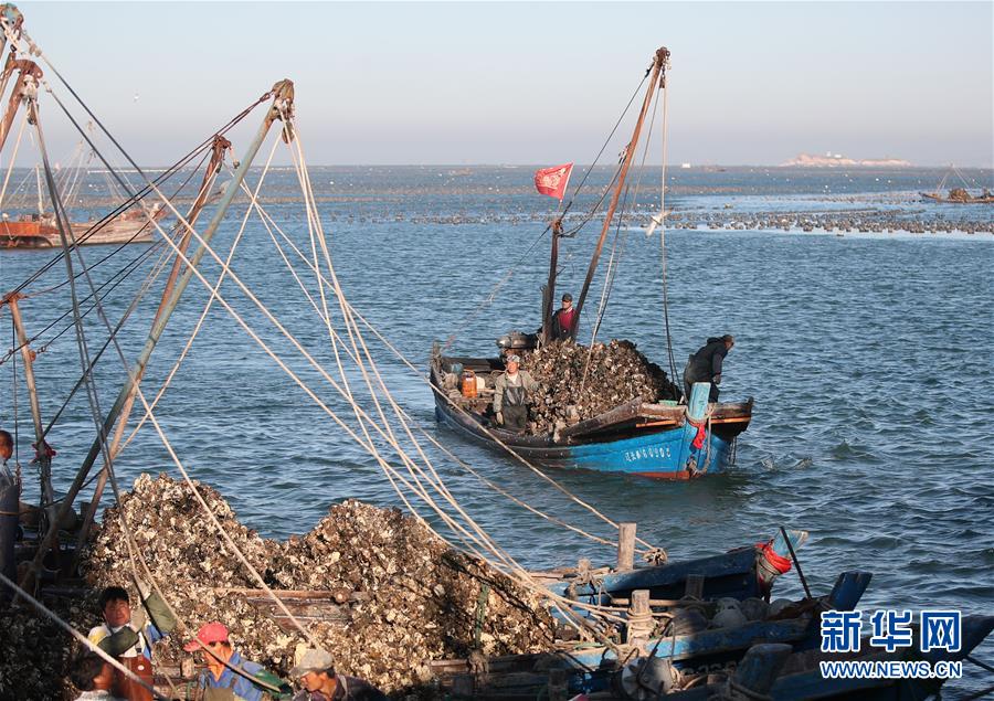 當(dāng)日,在遼寧省大連市長(zhǎng)??h廣鹿島海域,漁民忙碌地打撈牡蠣,呈現(xiàn)一片繁忙的豐收景象。近年來(lái),大連市持續(xù)加強(qiáng)海洋牧場(chǎng)建設(shè),目前已累計(jì)建設(shè)海洋牧場(chǎng)約36萬(wàn)公頃,投放各類魚礁約1578萬(wàn)平方米,建立國(guó)家級(jí)海洋牧場(chǎng)示范區(qū)14處。