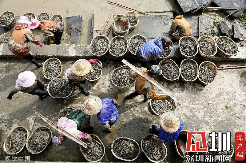 浙江臺(tái)州三門縣花橋鎮(zhèn)柵下村的文化禮堂前,村民們冒雨和商販交易蟶苗,現(xiàn)場(chǎng)一片繁忙。