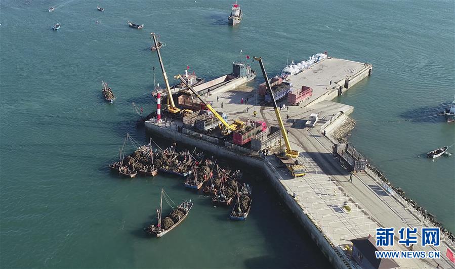 9月23日,滿載牡蠣的漁船返回碼頭(無人機拍攝)。新華社記者龍雷攝