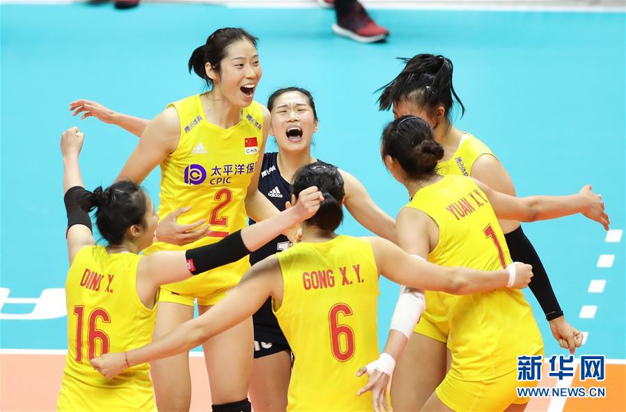 9月23日,中國隊(duì)球員在比賽中慶祝得分。當(dāng)日,在日本札幌舉行的2019年女排世界杯賽第二階段A組循環(huán)賽中,中國隊(duì)以3比0戰(zhàn)勝美國隊(duì)。新華社記者杜瀟逸攝