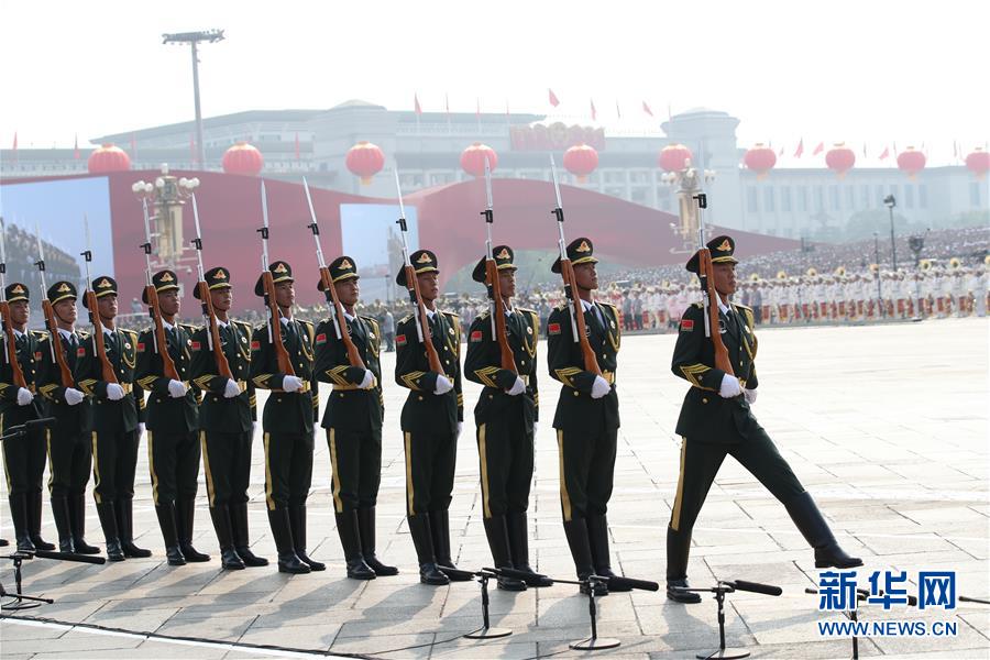 10月1日上午,慶祝中華人民共和國(guó)成立70周年大會(huì)在北京天安門廣場(chǎng)隆重舉行。這是標(biāo)兵入場(chǎng)。新華社記者陳曄華攝