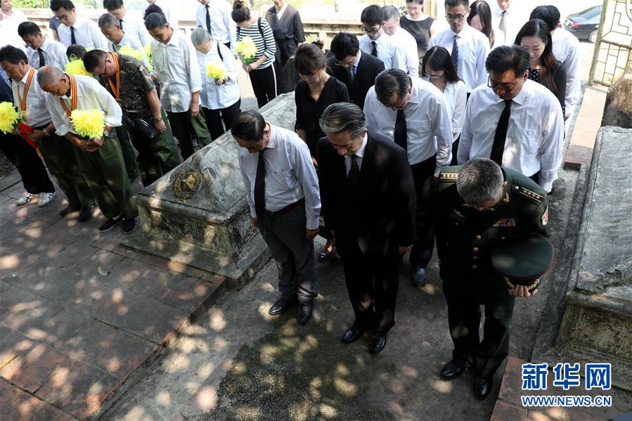 9月30日,在越南北部河南省,人們用鮮花祭奠中國(guó)援越烈士。 中國(guó)駐越南大使館館員、中國(guó)援越老戰(zhàn)士及其親屬、在越中資機(jī)構(gòu)和留學(xué)生代表等30日前往位于越南河南省的金榜烈士陵園,祭奠長(zhǎng)眠于此的14名中國(guó)援越烈士。越中友協(xié)副主席阮榮光等越方代表也參加了祭掃活動(dòng)。 新華社記者 王迪 攝