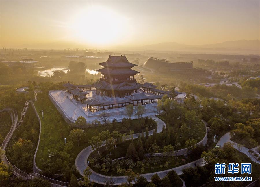 北京世園會(huì)園區(qū)內(nèi)的媯汭劇場(chǎng)(10月7日無(wú)人機(jī)拍攝)。新華社記者才揚(yáng)攝