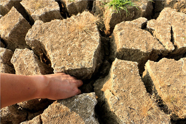 當(dāng)?shù)貢r(shí)間2016年5月13日,柬埔寨甘丹省,受厄爾尼諾現(xiàn)象影響,當(dāng)?shù)卦庥龈珊堤鞖猓靥粮珊蚤_裂。