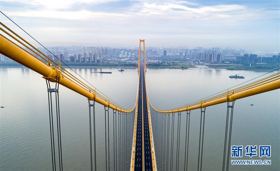 武漢楊泗港長(zhǎng)江大橋(9月25日無(wú)人機(jī)拍攝)。新華社記者熊琦攝
