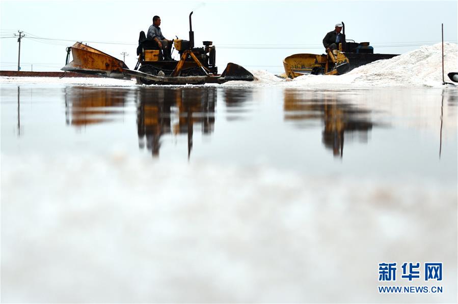 魯北鹽場工人在鹽池中收獲海鹽(10月9日攝)。新華社記者 朱崢 攝