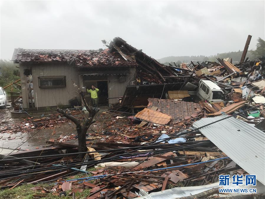 10月12日,在日本千葉縣市原市,建筑物遭龍卷風(fēng)襲擊后被損毀。新華社記者 鄧敏 攝