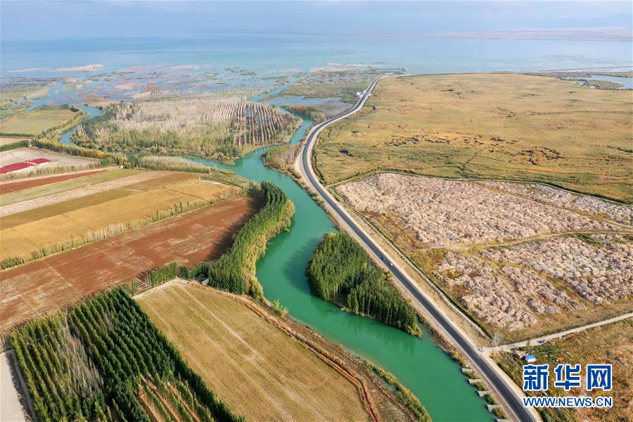開都河支流匯入博斯騰湖(10月12日無人機(jī)拍攝)。入秋以來,新疆博斯騰湖碧波蕩漾,美景如畫,吸引各地游客前來游玩。新華社記者丁磊攝