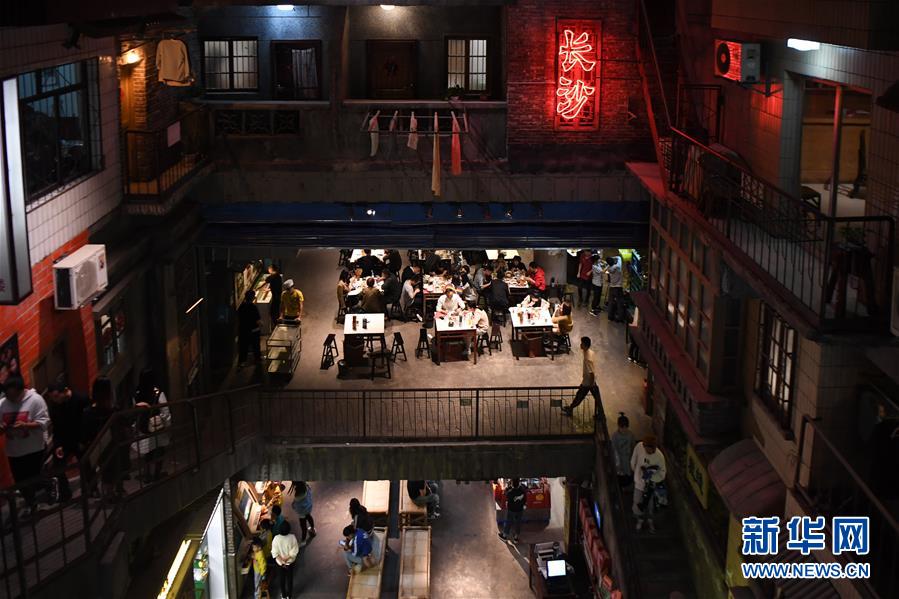 10月12日,食客們在一家將老長沙市井文化概念與餐飲結(jié)合的“網(wǎng)紅”餐館內(nèi)用餐。
