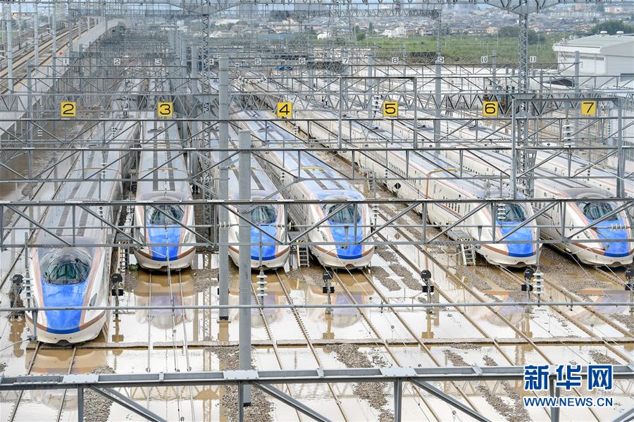 10月14日,在日本長野市,東日本鐵路公司長野新干線車輛中心的新干線列車被洪水浸泡。受縱貫東日本強(qiáng)臺風(fēng)“海貝思”帶來的強(qiáng)降雨影響,日本多地暴發(fā)洪災(zāi),已造成33人死亡、19人失蹤。據(jù)日本共同社13日統(tǒng)計,“海貝思”過境導(dǎo)致日本多處河流泛濫,目前有21條河流決堤24處。其中,流經(jīng)長野縣的千曲川決堤,造成長野市和千曲市大范圍被淹,大片住宅區(qū)被洪水包圍,有的房屋甚至被淹至2層。新華社記者華義攝