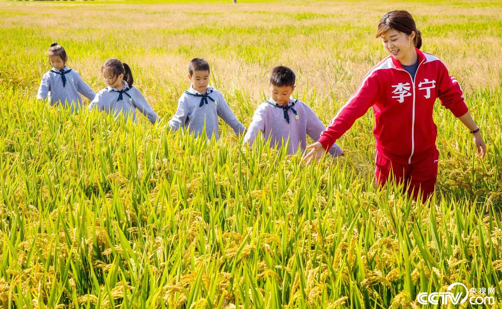 2019年10月15日,浙江省湖州市長興縣開發(fā)區(qū)實驗幼兒園的老師帶領孩子們走進稻田,感受豐收的喜悅。圖片來源:視覺中國