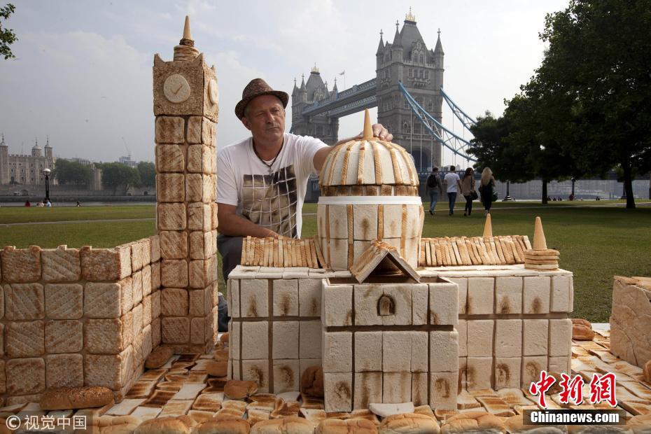藝術家用面包等烘焙食品打造微縮倫敦地標建筑。圖片來源:視覺中國