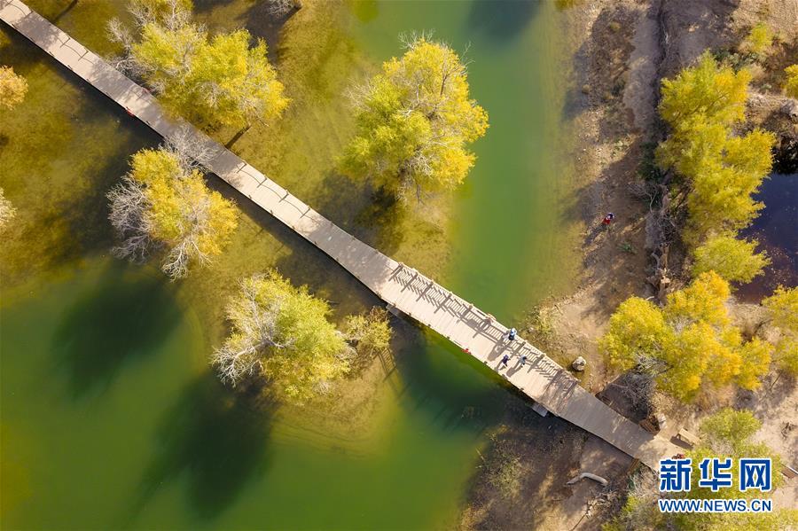 10月16日無人機拍攝的內(nèi)蒙古阿拉善盟額濟納旗境內(nèi)的胡楊林。新華社記者彭源攝