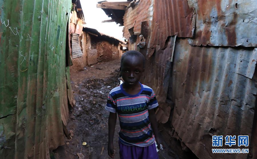 10月16日,在肯尼亞內(nèi)羅畢基貝拉貧民窟,一名兒童在小巷中行走。新華社記者王騰攝