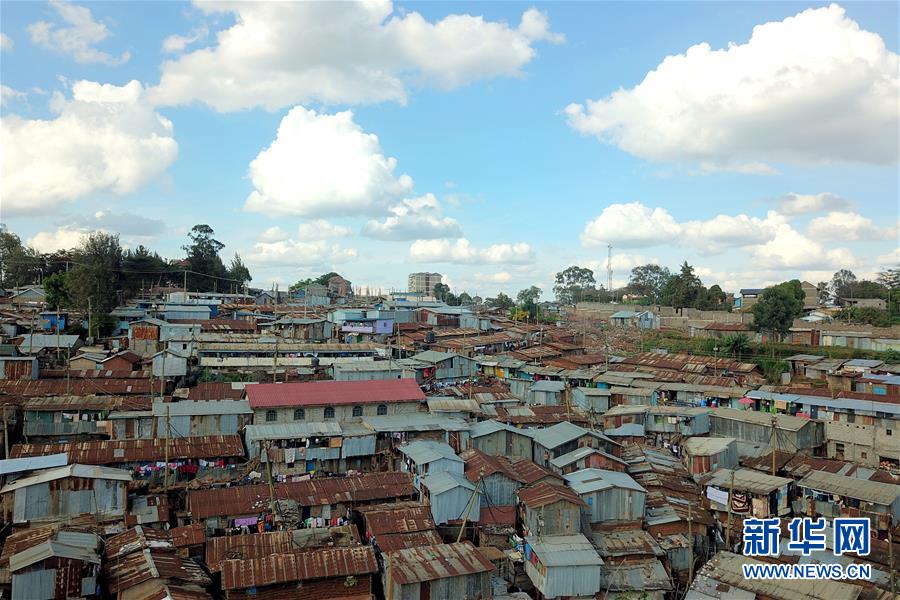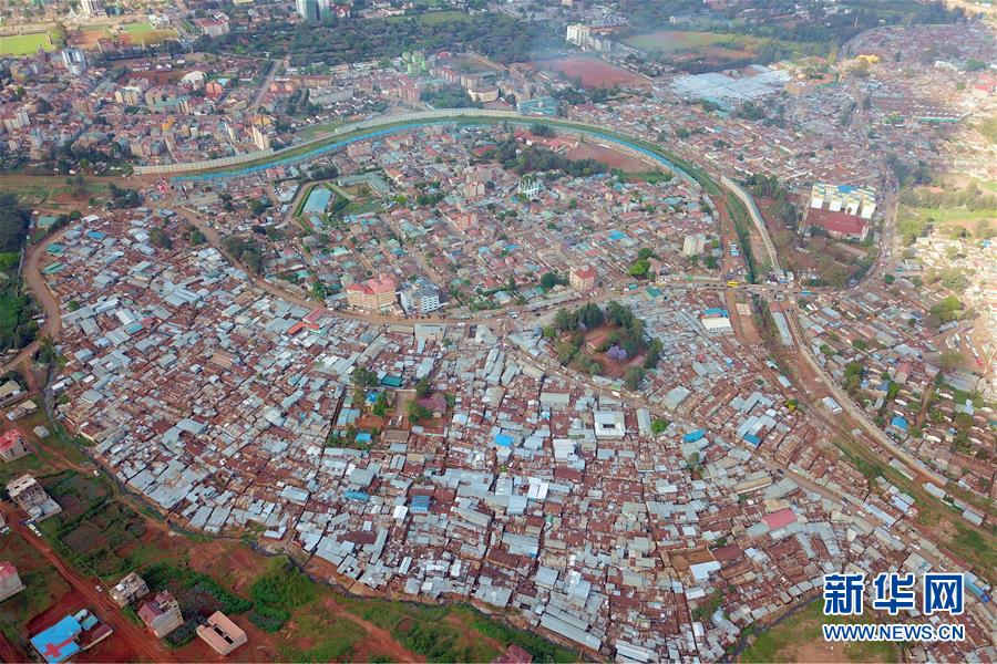 這是10月16日在肯尼亞內(nèi)羅畢拍攝的基貝拉貧民窟(航拍照片)。新華社記者王騰攝