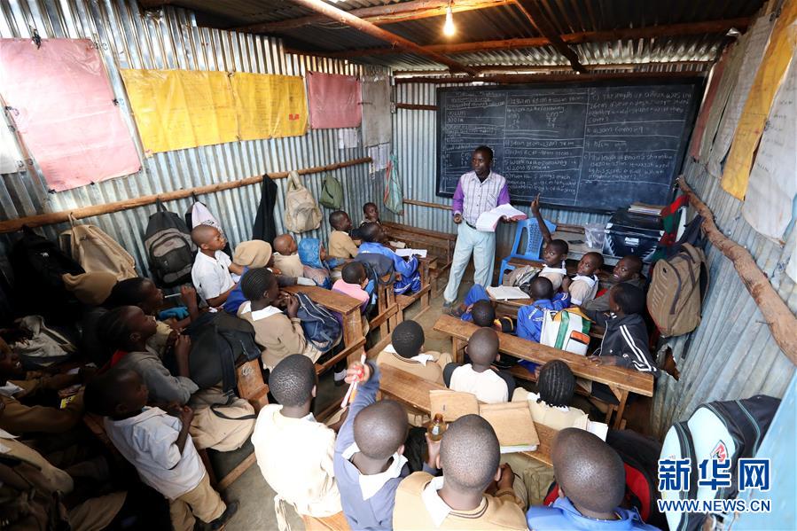 10月16日,在肯尼亞內(nèi)羅畢基貝拉貧民窟,學(xué)生在社區(qū)學(xué)校上課。新華社記者王騰攝