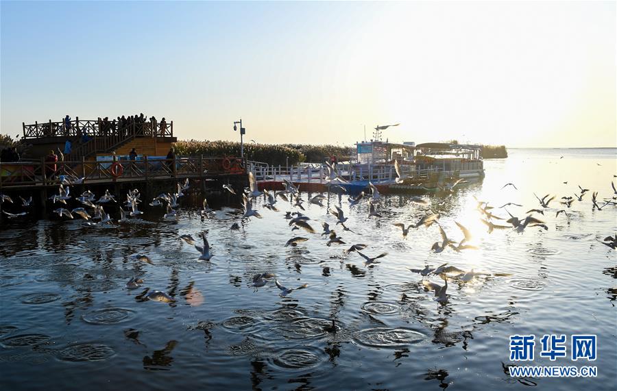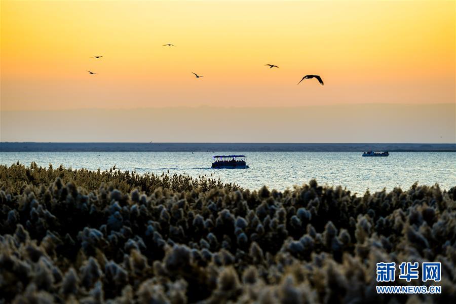 居延海位于內蒙古阿拉善盟額濟納旗北部,是我國第二大內陸河黑河的尾閭湖。其形狀狹長彎曲,猶如新月,額濟納河匯入湖中。2003年以來,隨著黑河分水工程的實施,干涸已久的東居延海湖盆重現(xiàn)碧波蕩漾的美景,煥發(fā)出勃勃生機。 新華社記者 彭源 攝