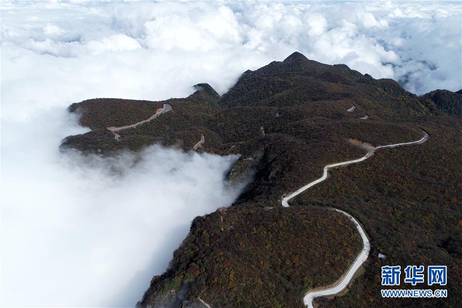 10月16日拍攝的漢中市南鄭區(qū)龍頭山風(fēng)景區(qū)(無(wú)人機(jī)拍攝)。 新華社記者 張博文 攝