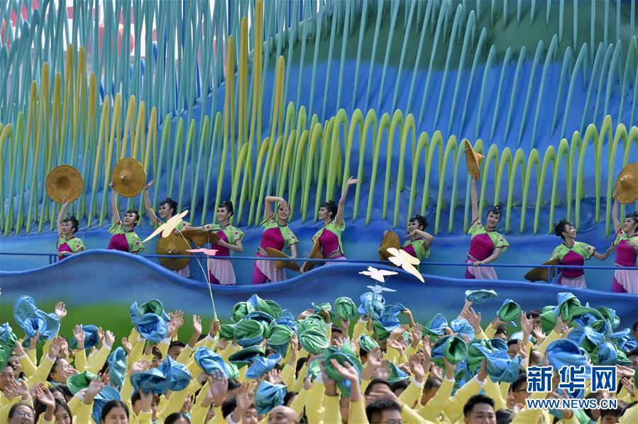 10月1日上午,慶祝中華人民共和國(guó)成立70周年大會(huì)在北京天安門廣場(chǎng)隆重舉行。這是群眾游行中的“綠水青山”方陣。 新華社記者 周華 攝