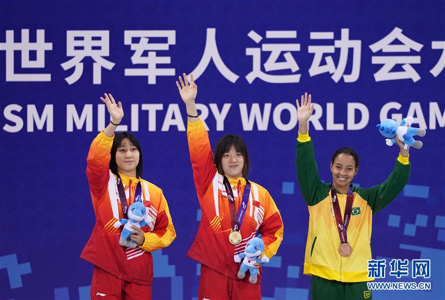 10月20日,中國隊(duì)選手吳慧敏(中)、包雪怡(左)在頒獎儀式上。新華社記者金良快攝
