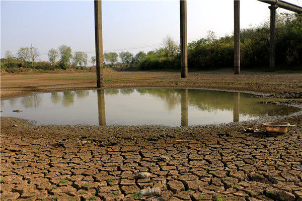 當(dāng)?shù)貢r(shí)間2016年5月13日,柬埔寨甘丹省,受厄爾尼諾現(xiàn)象影響,當(dāng)?shù)卦庥龈珊堤鞖?,池塘干涸開(kāi)裂。