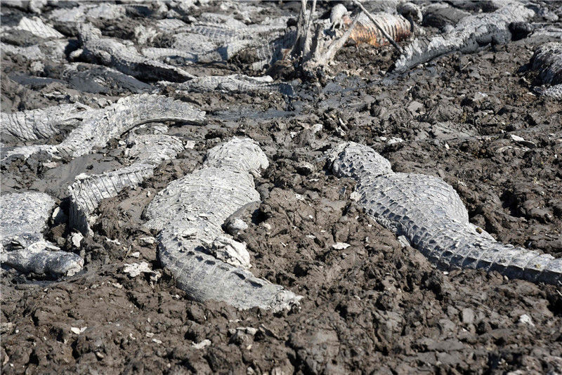 當(dāng)?shù)貢r(shí)間2016年6月24日,巴拉圭General Diaz,巴拉圭與阿根廷邊境遭遇嚴(yán)重干旱,皮科馬約河河水枯竭,凱門(mén)鱷在水塘內(nèi)。