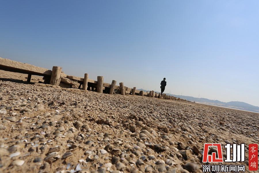 2019年10月20日,江西九江,鄱陽(yáng)湖星子站水位為10.18米,隨著水位持續(xù)下降,豐水期浸泡在鄱陽(yáng)湖底的一座總長(zhǎng)2930米被譽(yù)為“中國(guó)最長(zhǎng)的湖中古木石橋”露出水面。