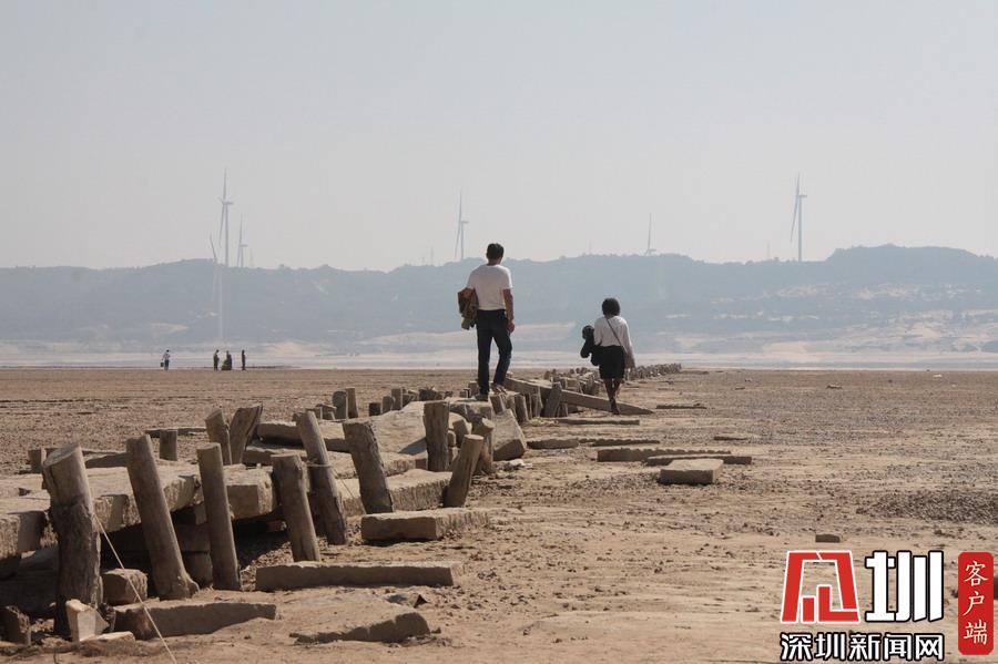 江西九江,隨著水位持續(xù)下降,豐水期浸泡在鄱陽(yáng)湖底被譽(yù)為“中國(guó)最長(zhǎng)的湖中古木石橋”露出水面。