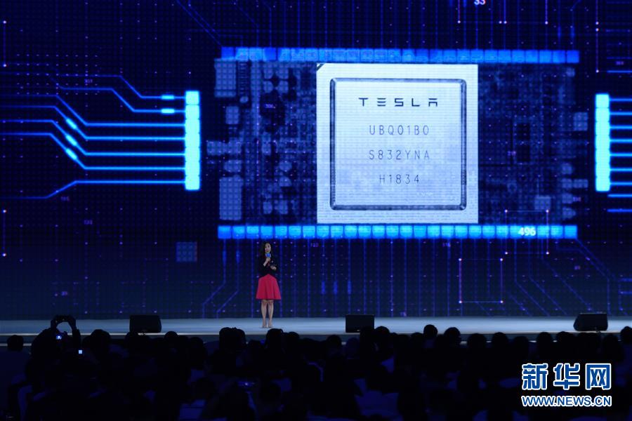 10月20日,特斯拉公司代表在介紹“特斯拉完全自動(dòng)駕駛芯片”。新華社記者黃宗治攝