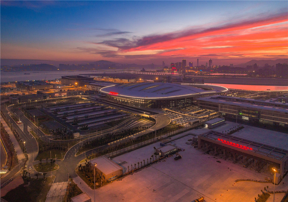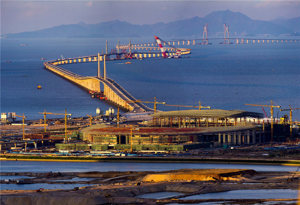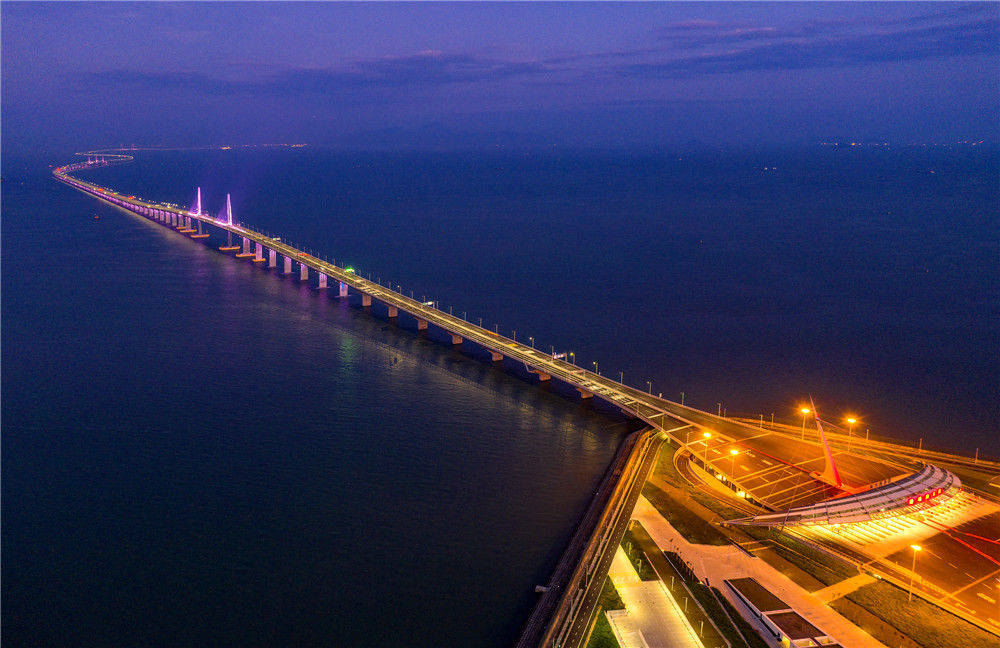 晨曦中的港珠澳大橋珠澳口岸人工島(10月24日無(wú)人機(jī)拍攝)。2018年10月23日,港珠澳大橋正式開通。在這座圓夢(mèng)橋、同心橋、自信橋、復(fù)興橋開通一周年之際,記者親自體驗(yàn)“一橋連三地、一日游三城”的悠閑與便利,于不同的旖旎風(fēng)光中自在游覽,在不同的城市風(fēng)貌間自如切換。新華社記者張金加攝