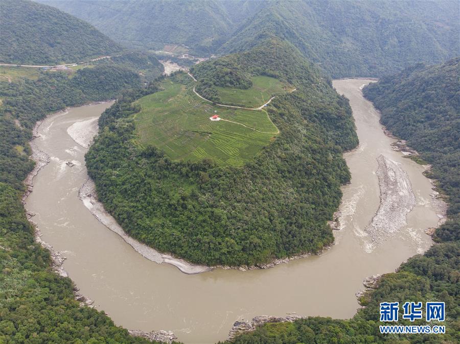 這是墨脫縣果果塘大拐彎(10月24日無人機(jī)拍攝)。新華社記者田金文攝