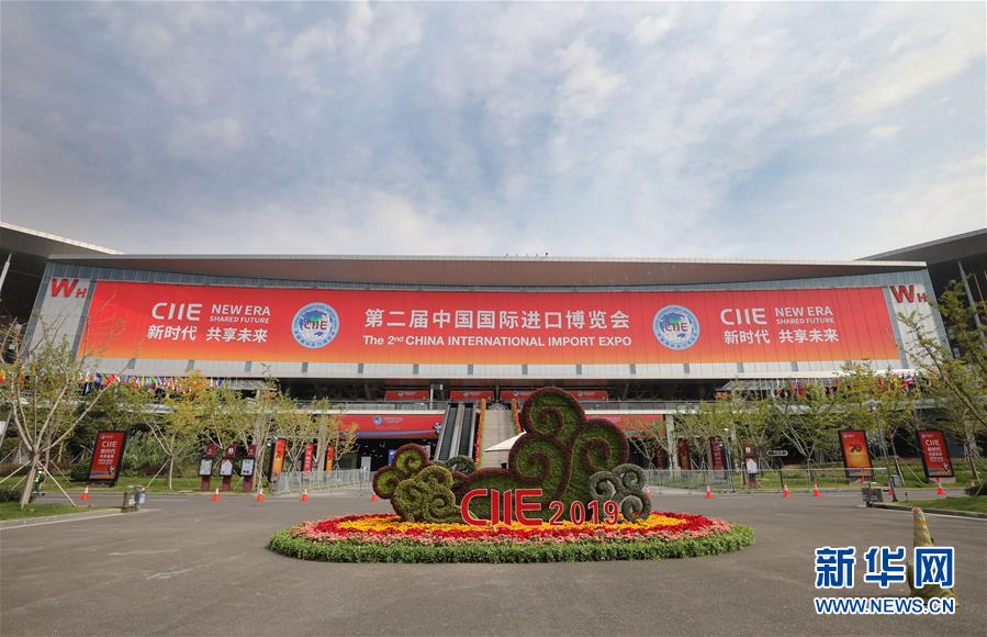 這是10月25日拍攝的國家會展中心(上海)西入口處。 第二屆中國國際進(jìn)口博覽會開幕在即,在進(jìn)博會舉辦地、國家會展中心(上海)內(nèi),展館搭建施工人員和展會志愿者們在進(jìn)行從展臺搭建到完善觀展標(biāo)識等的布展準(zhǔn)備工作。   新華社記者 方喆攝