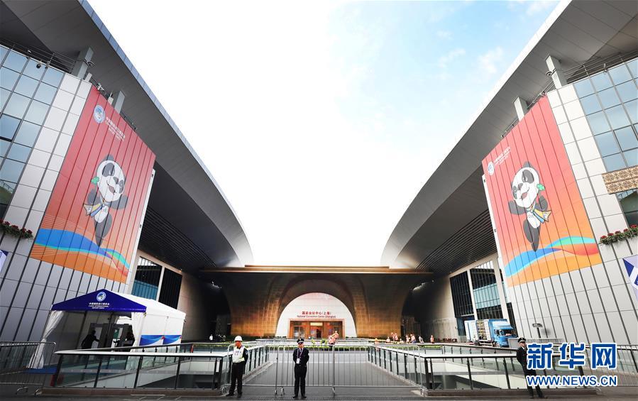 這是10月25日拍攝的國家會展中心(上海)西入口處。 第二屆中國國際進(jìn)口博覽會開幕在即,在進(jìn)博會舉辦地、國家會展中心(上海)內(nèi),展館搭建施工人員和展會志愿者們在進(jìn)行從展臺搭建到完善觀展標(biāo)識等的布展準(zhǔn)備工作。 新華社記者 方喆攝