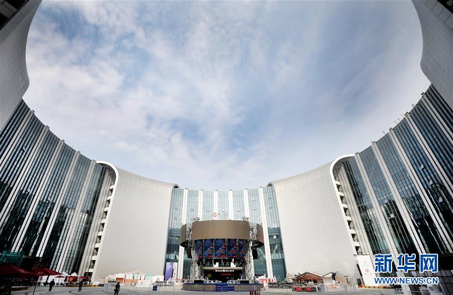 這是10月25日拍攝的位于國展中心中央廣場的進(jìn)博會中央舞臺(中下)。 新華社記者 方喆攝