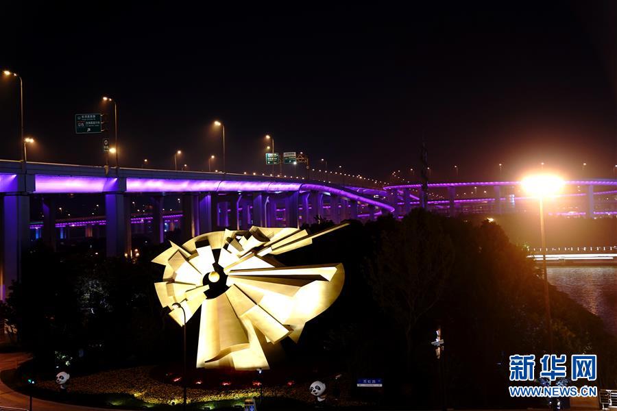 10月25日晚在國(guó)家會(huì)展中心(上海)周邊地區(qū)拍攝的夜景。新華社記者張建松攝