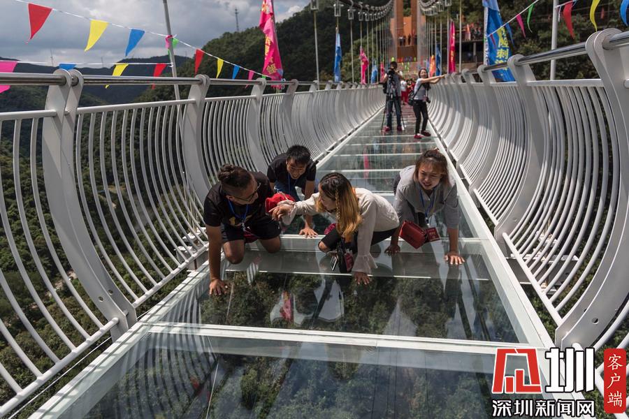 2018年8月18日,昆明市安寧首座高空峽谷5D玻璃大橋在青龍峽景區(qū)內正式試運行,這也是云南省第一座高空峽谷玻璃大橋。該橋位于螳螂川河畔的青龍峽景區(qū),橋的垂直高度108米,總長跨度為188米。橋面采用聲光電技術,有20多種特效場景。踩上去,伴隨著玻璃破碎的聲音,橋面也呈現玻璃破碎的畫面,整個營造出了5D的視覺感受,顛覆你對高空刺激的認知。游客踏上高空玻璃橋表示很“害怕”。