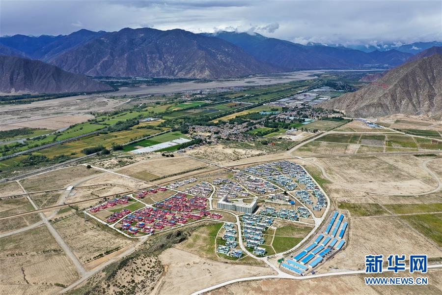 鳥(niǎo)瞰曲水縣才納鄉(xiāng)四季吉祥村(8月8日無(wú)人機(jī)拍攝)。新華社記者普布扎西攝