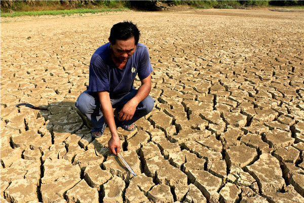 2019年10月4日,江西彭澤縣黃嶺鄉(xiāng)芳湖村,池塘干枯見底。