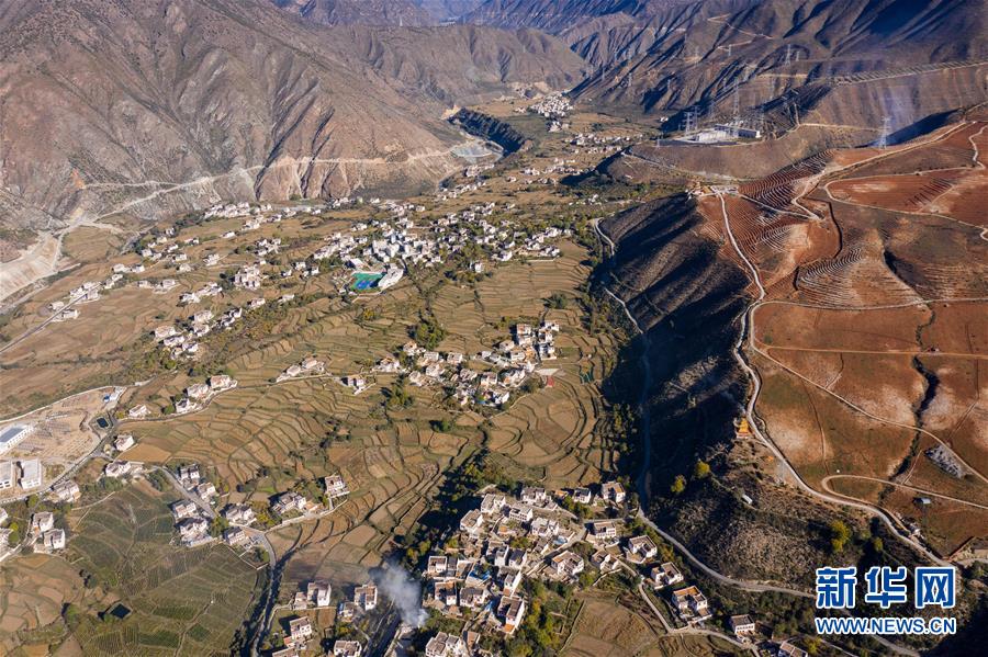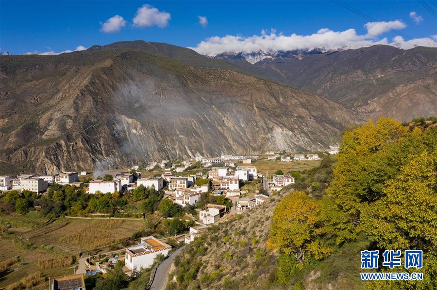 10月29日無人機拍攝的鄉(xiāng)城縣青麥鄉(xiāng)南吾村藏鄉(xiāng)田園風光。新華社記者江宏景攝