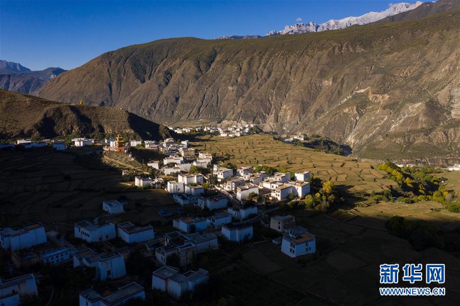 10月29日無人機拍攝的鄉(xiāng)城縣青麥鄉(xiāng)南吾村藏鄉(xiāng)田園風光。新華社記者江宏景攝