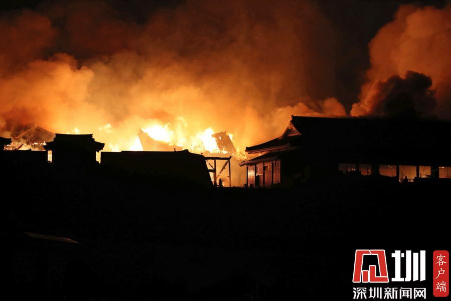 日本沖繩縣那霸市的琉球王國都城遺址首里城火災(zāi)現(xiàn)場。