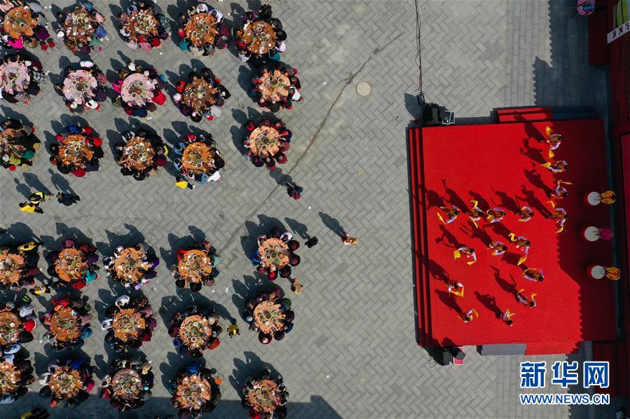 11月2日,南京仙林街道仙林新村社區(qū)居民參加千家宴(無人機(jī)拍攝)。 新華社記者 季春鵬 攝